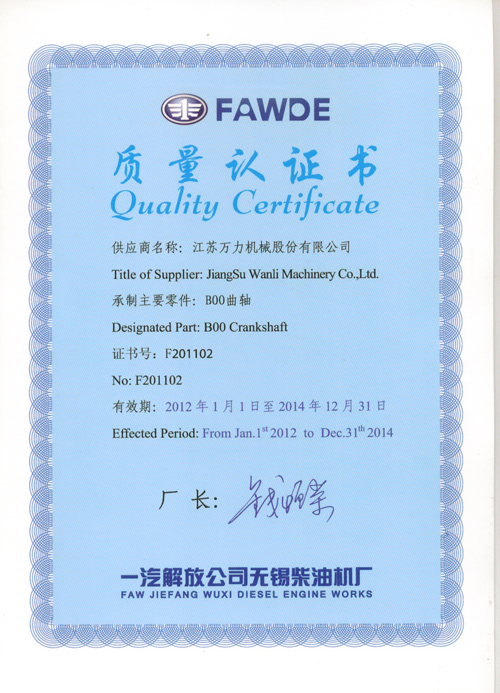 2012一汽錫柴質(zhì)量認(rèn)證書